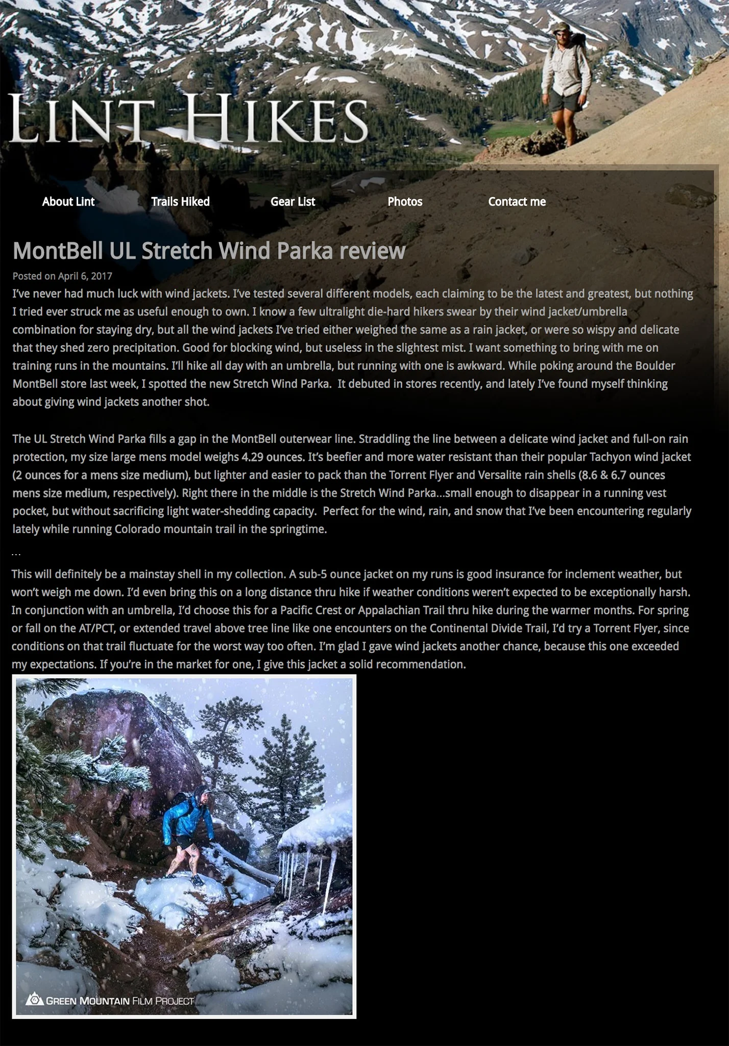 LINT HIKES.COM: MONT-BELL PARKA REVIEW